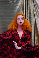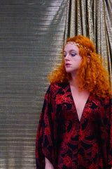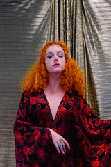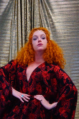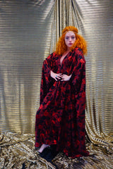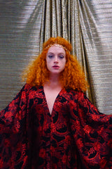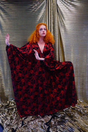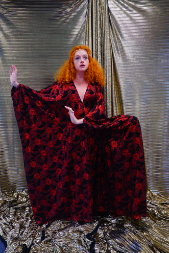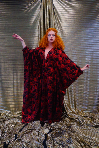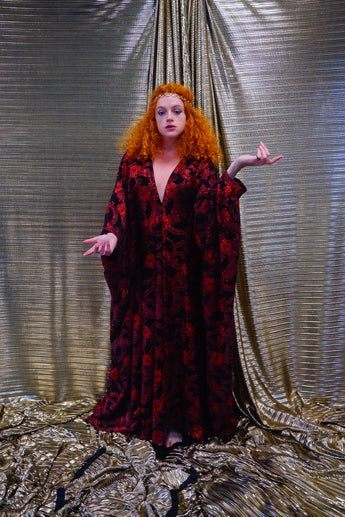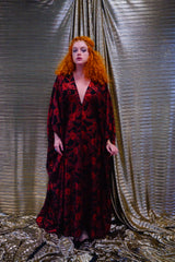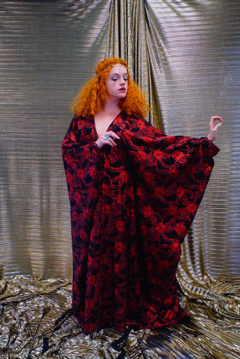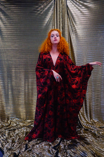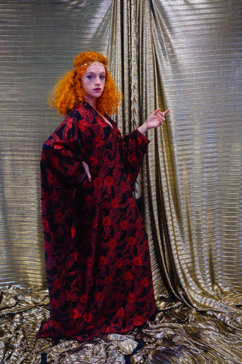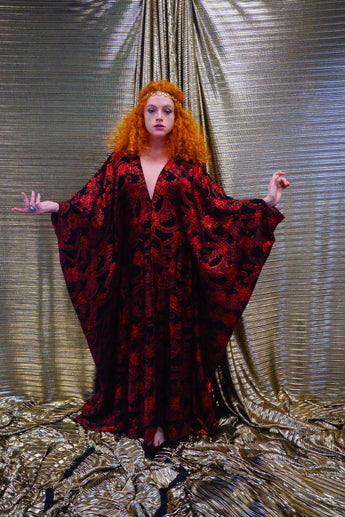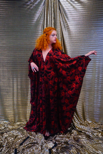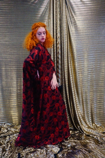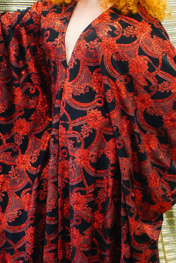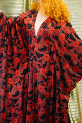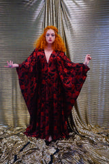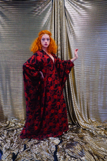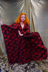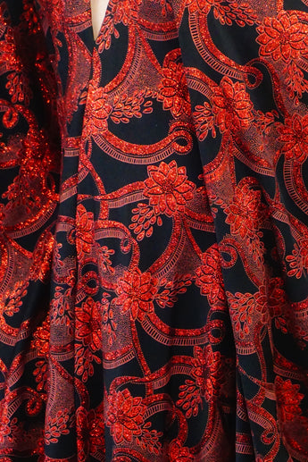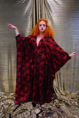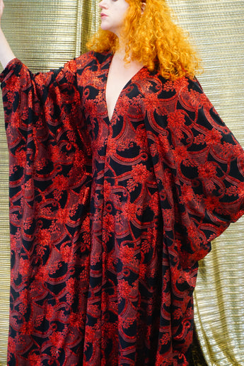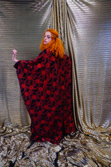Red and black floral heavily glittered kaftan Gown