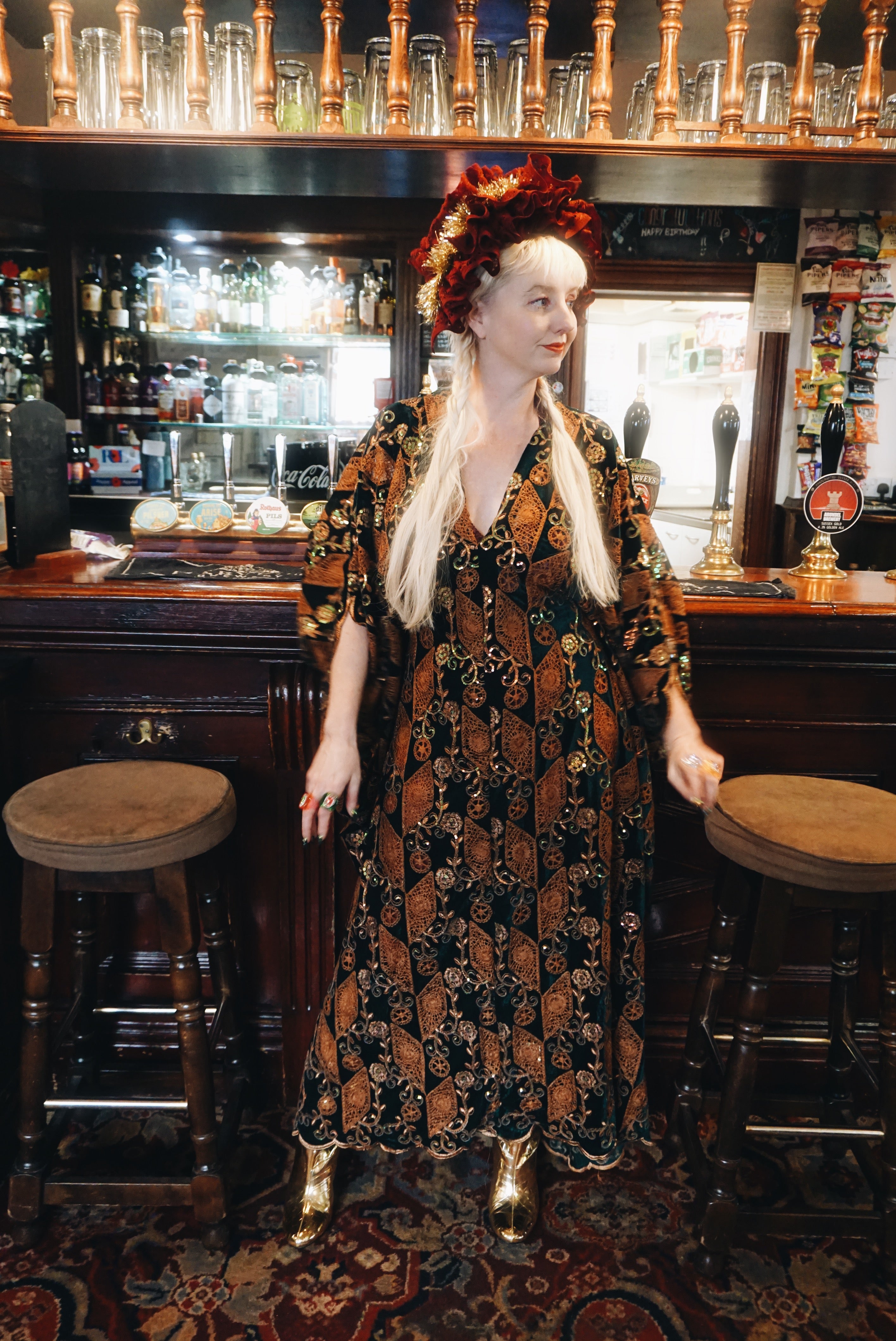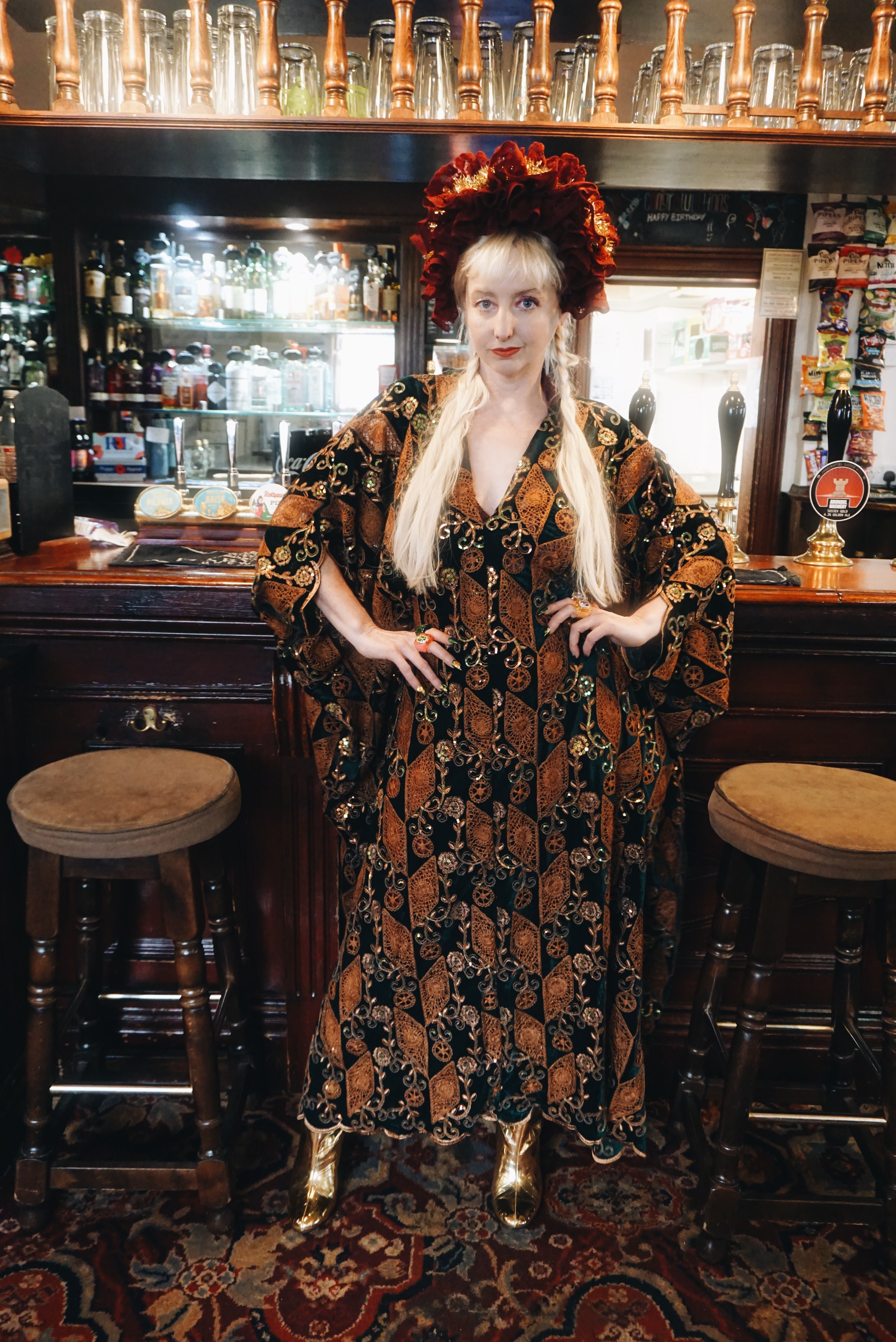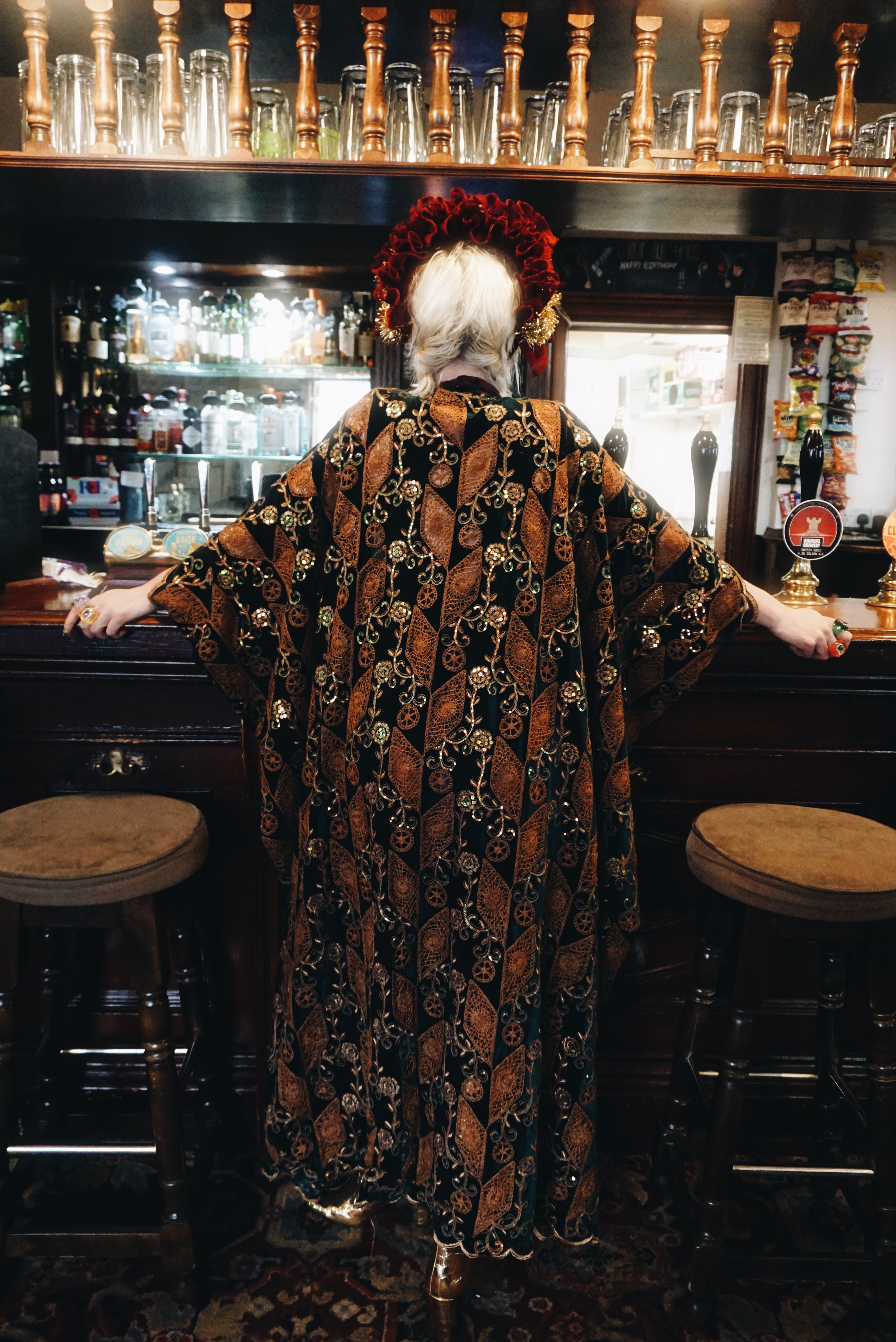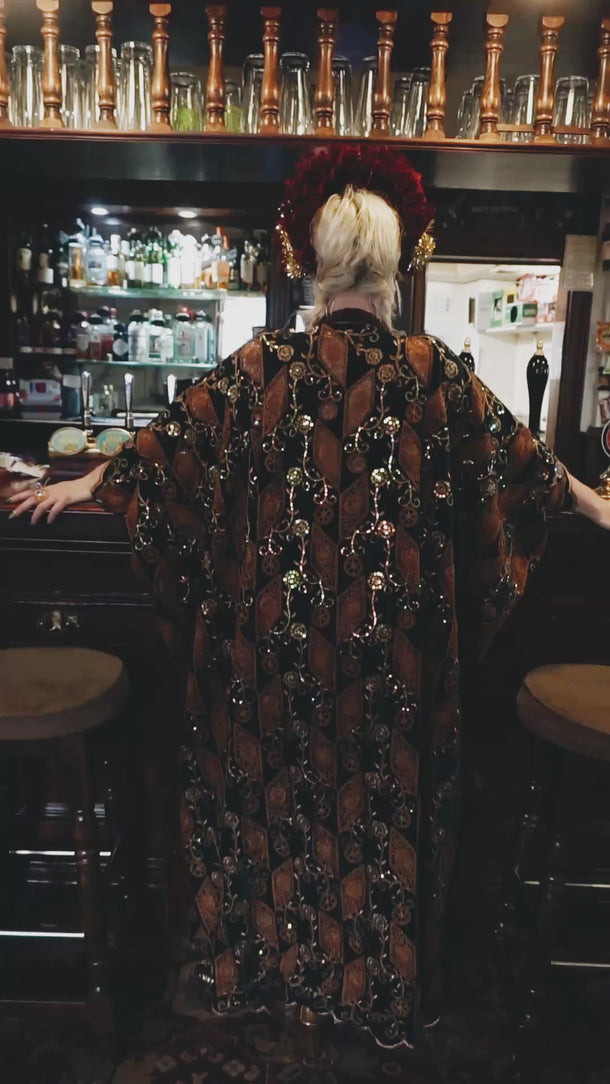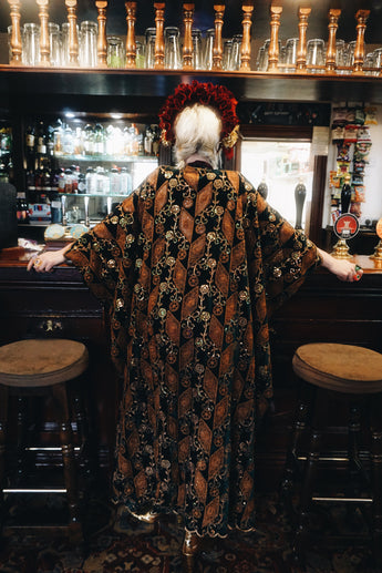 • The centre of the kaftan will always be the shortest length, as our kaftans are designed to be longer at the sides than at the front to create a draped, bell-sleeved effect.