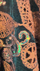 Beautiful velvet lace with sequins and pattered crochet lace - Deep green Brown Diamonds