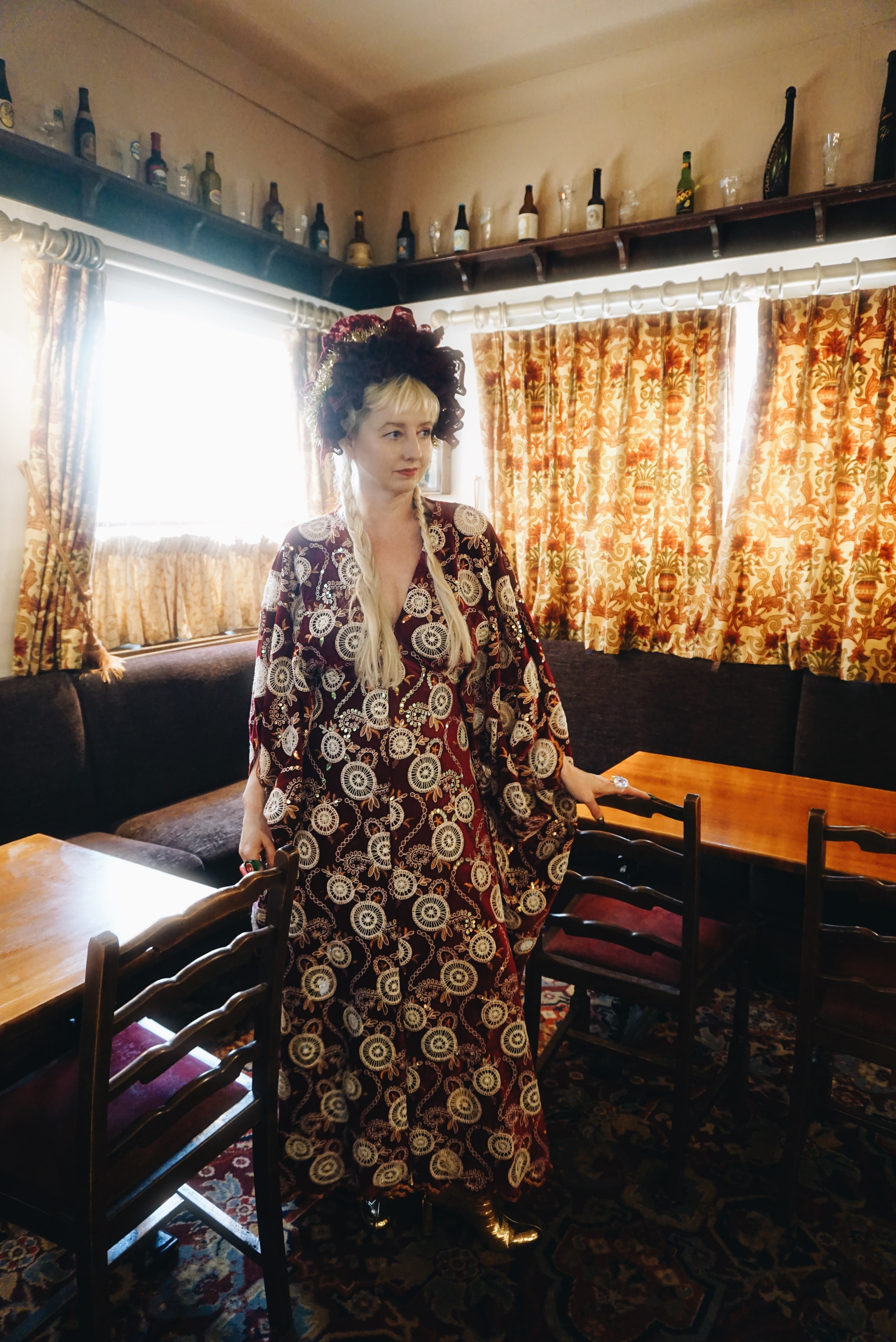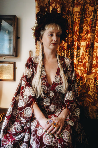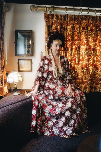 Our kaftan dresses are uniquely fitted with hidden velvet ribbons inside, meaning YOU decide how you'd like to wear them. Choose from -