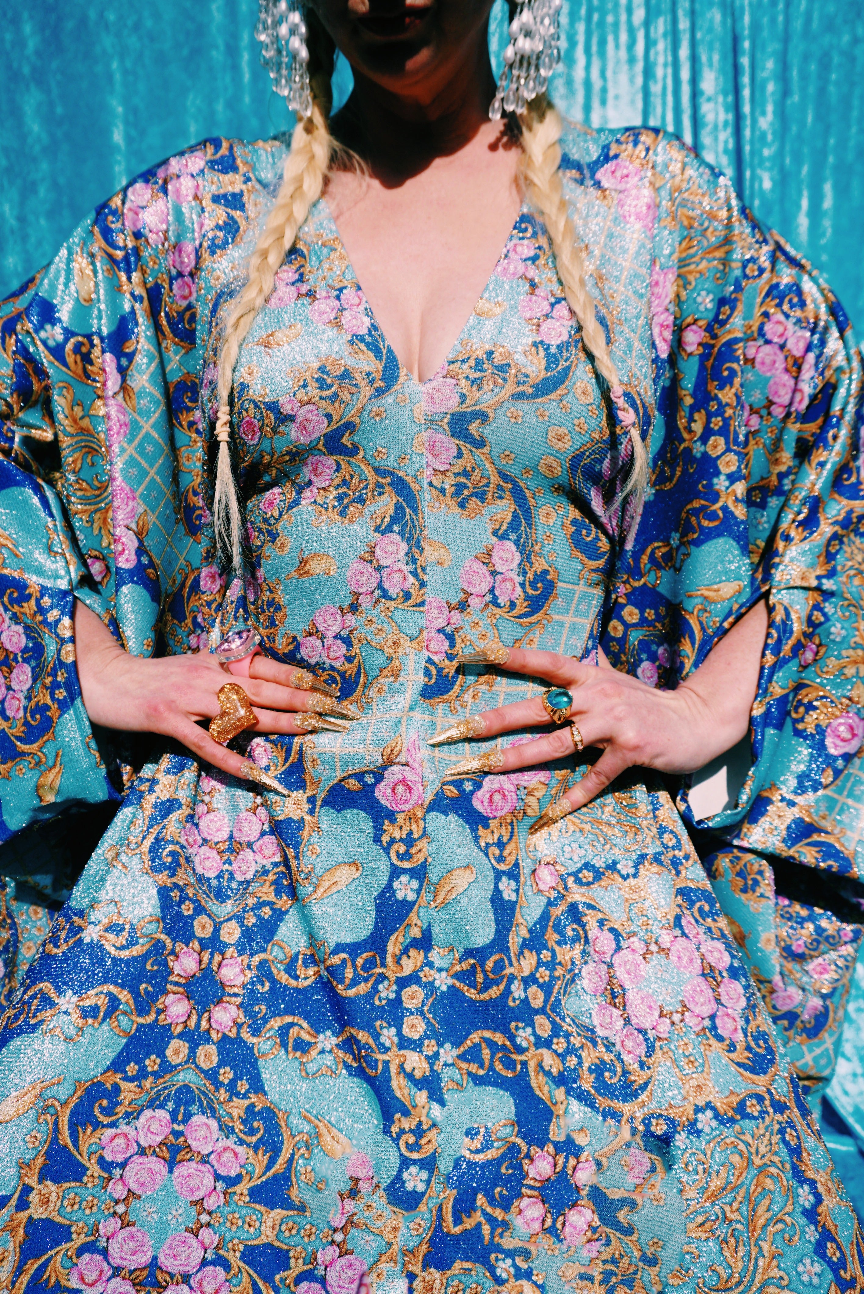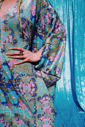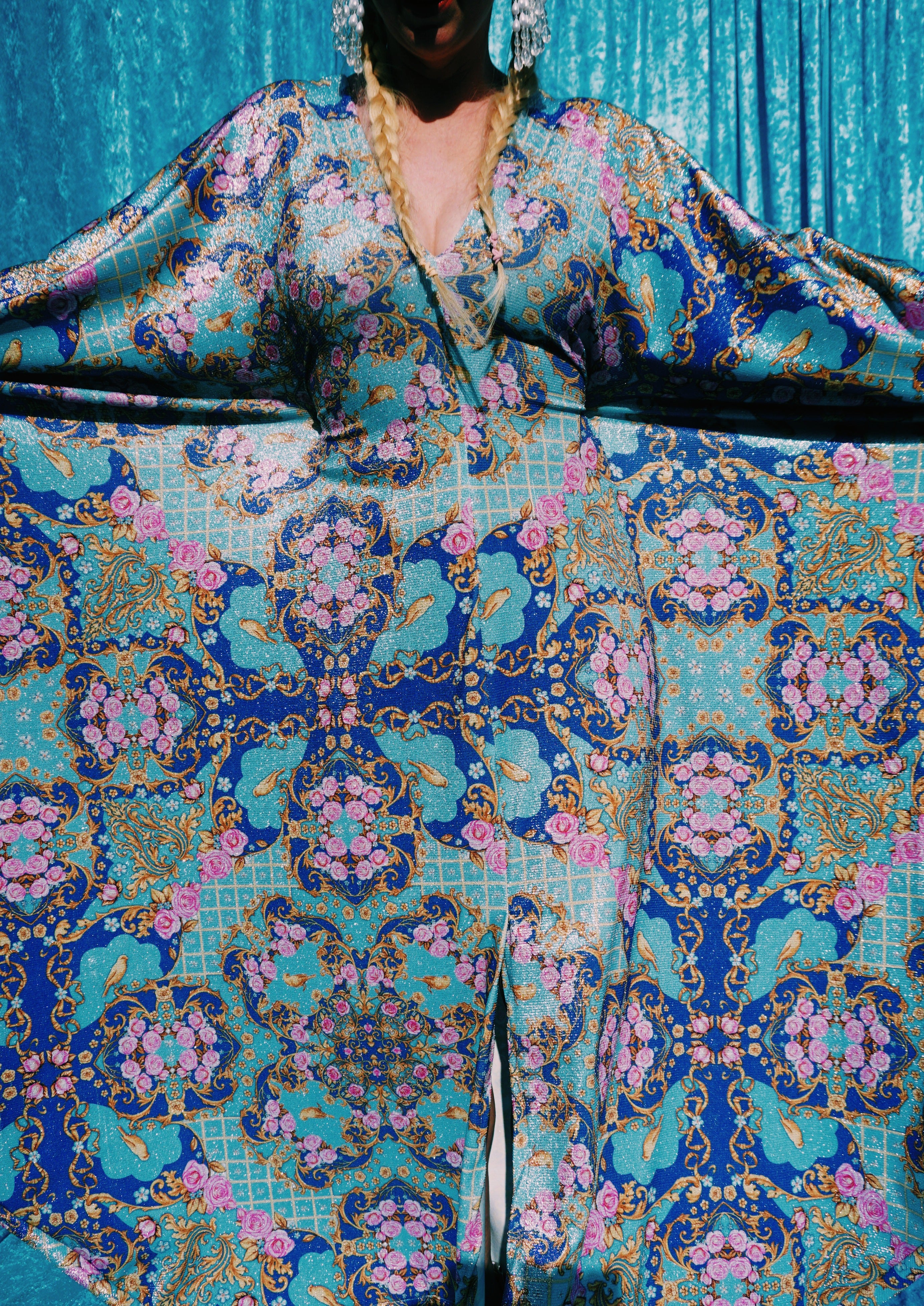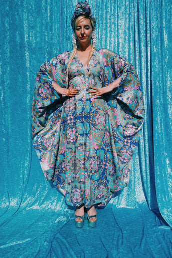 Our kaftan dresses are uniquely fitted with hidden velvet ribbons inside, meaning YOU decide how you'd like to wear them. Choose from -