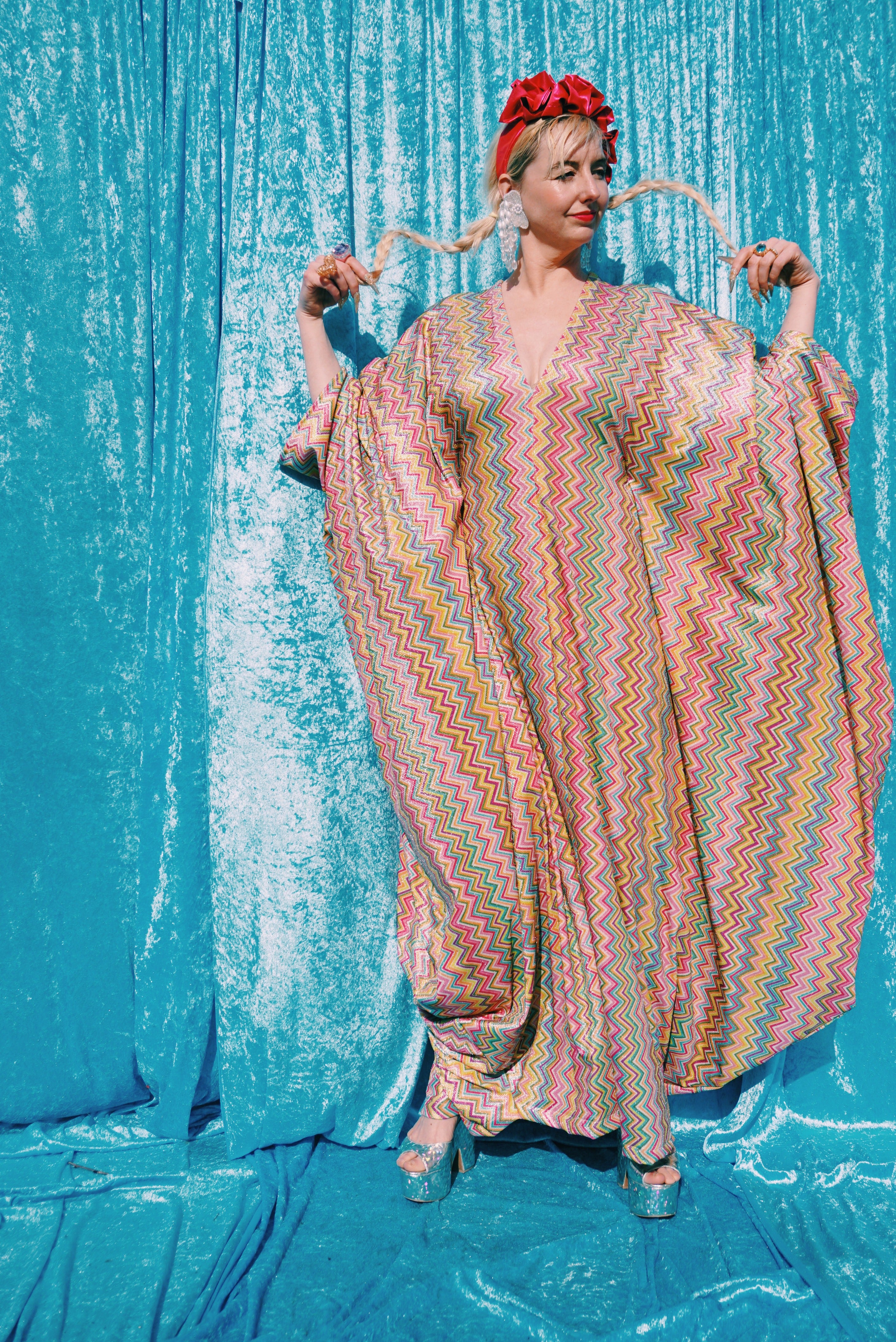 Lolliop Lurex Zig-Zag Hot Pink Lurex Kaftan
