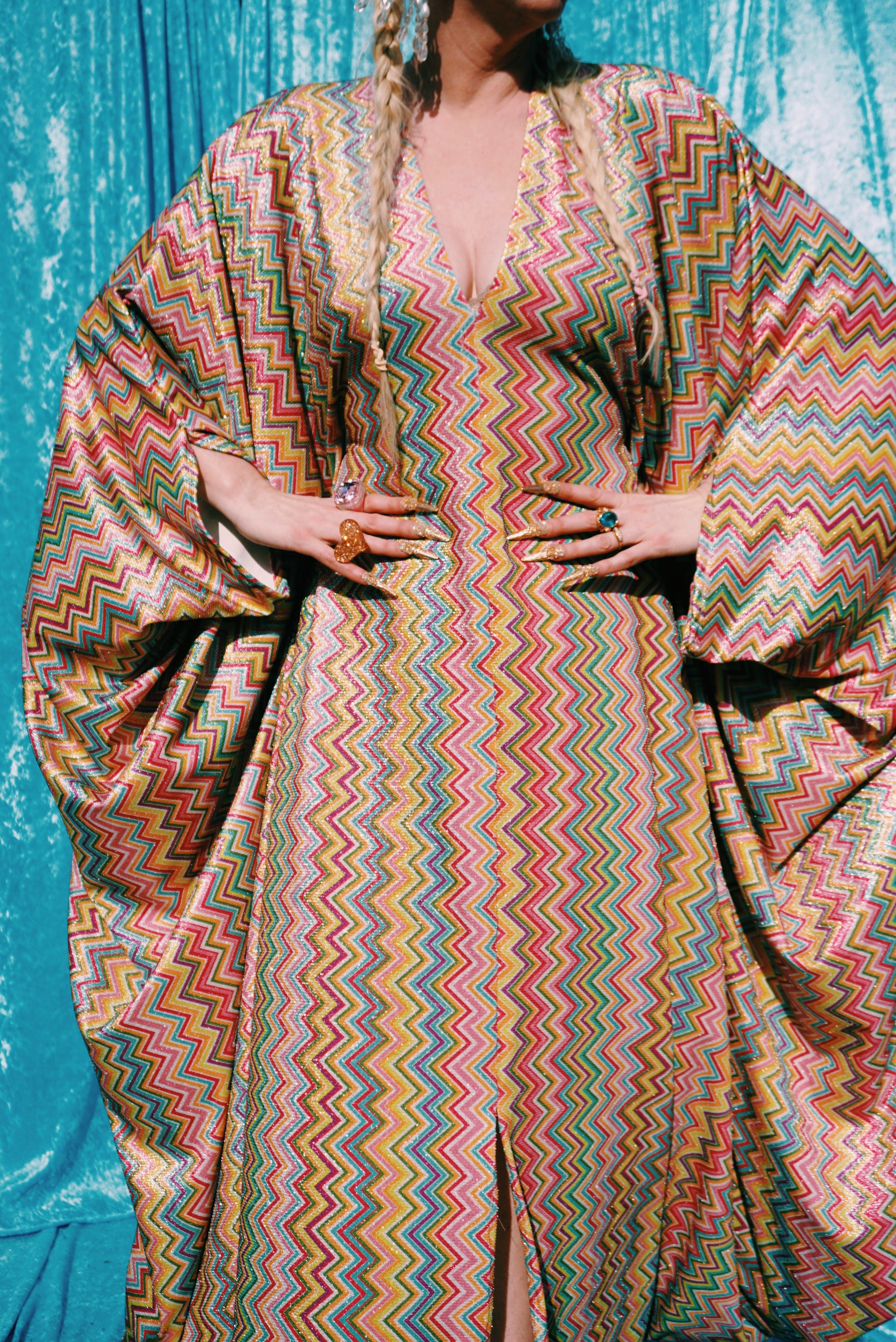 Our kaftan dresses are uniquely fitted with hidden velvet ribbons inside, meaning YOU decide how you'd like to wear them. Choose from -