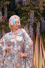 Our kaftan dresses are uniquely fitted with hidden velvet ribbons inside, meaning YOU decide how you'd like to wear them. Choose from -