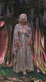 Luxe Pastel Rainbow Stripe Sequin V Neck Kaftan Gown, Freesize