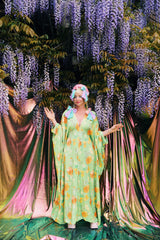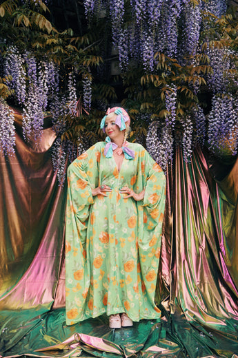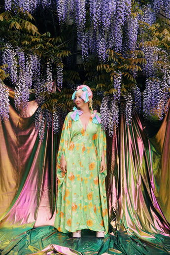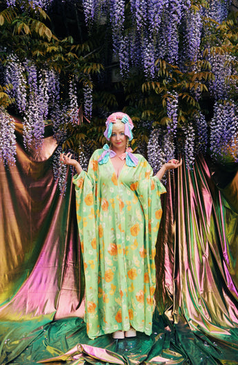 Our kaftan dresses are uniquely fitted with hidden velvet ribbons inside, meaning YOU decide how you'd like to wear them. Choose from -