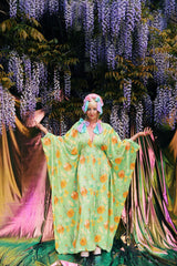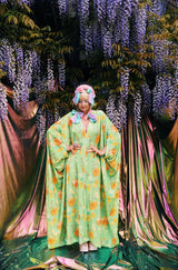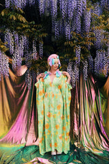 Orange Bloom V-Neck Kaftan Gown in a thick, soft stretch Velvet of medium weight
