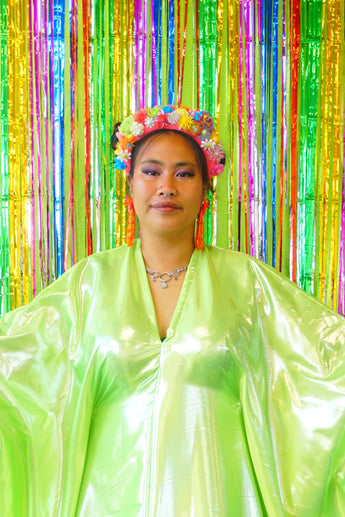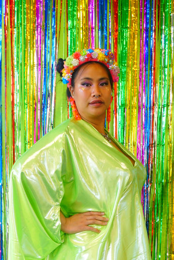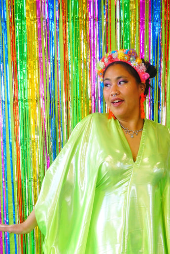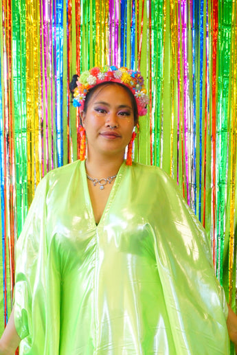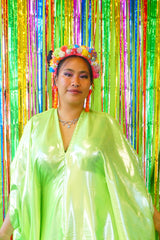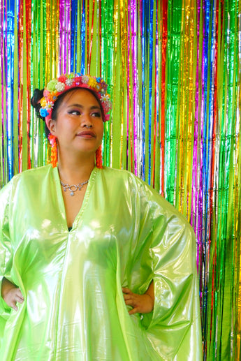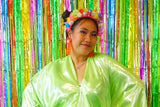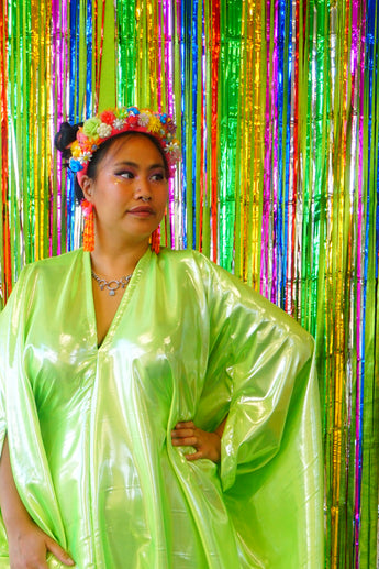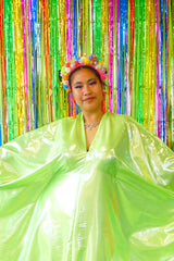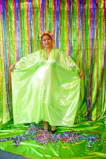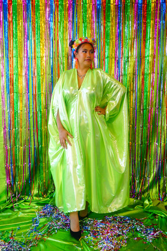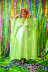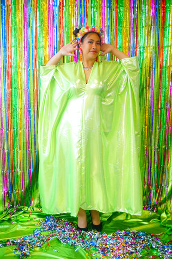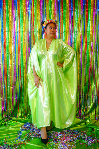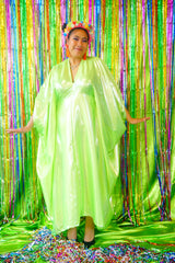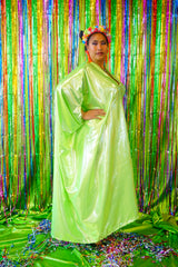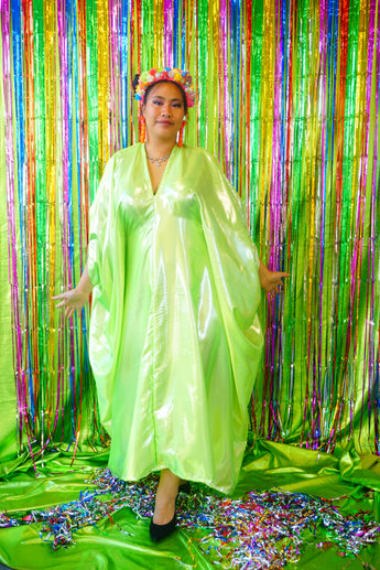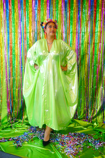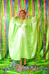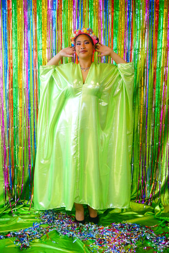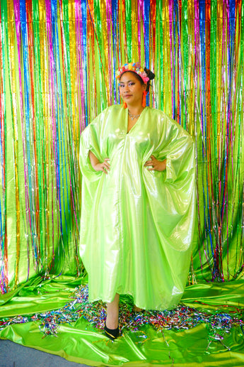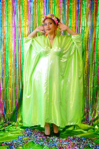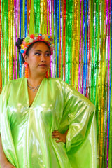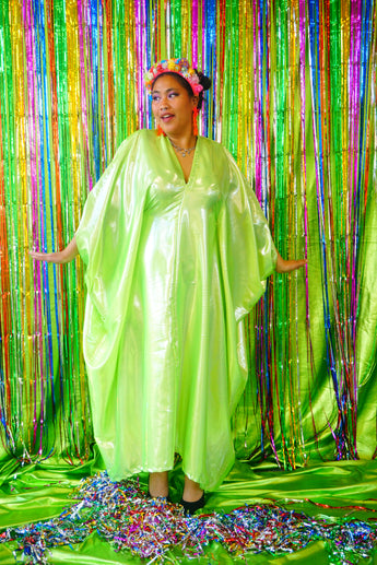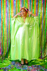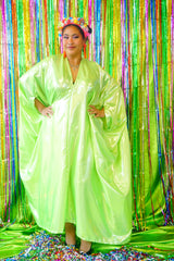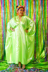 Slinky Satin Metallic Chrome Kaftan - Prom Queen Lime Green