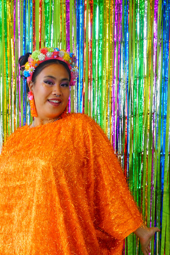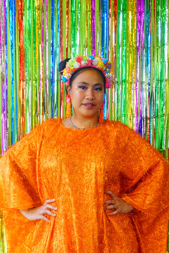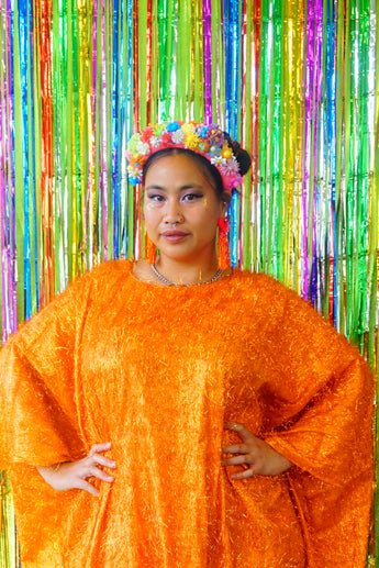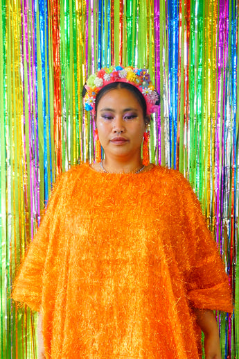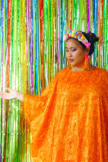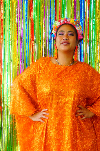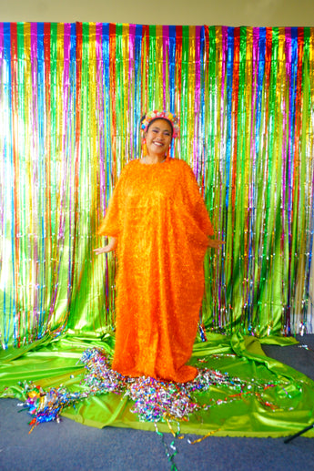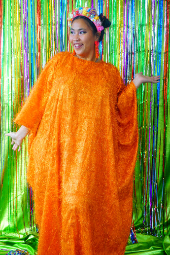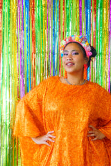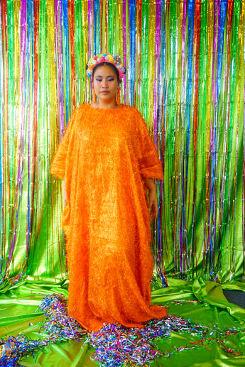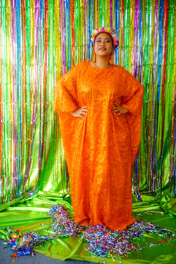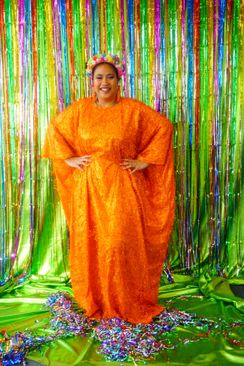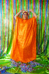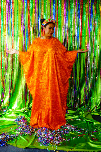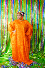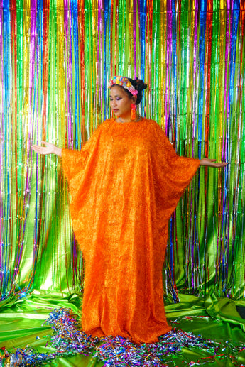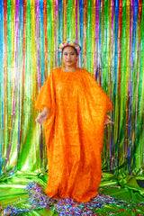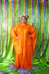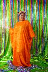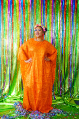 Sparkles Tinsel Hair Maxi Kaftan Party Dress Orange