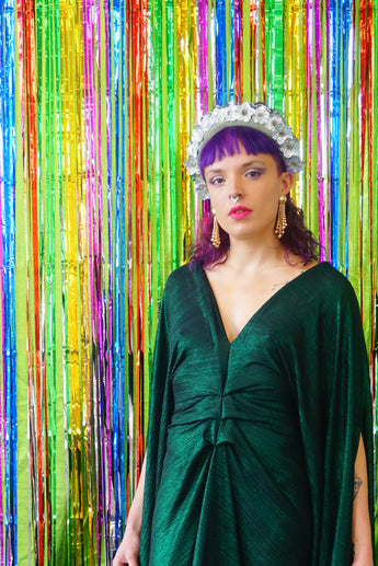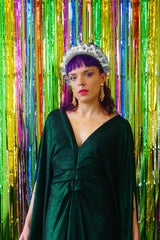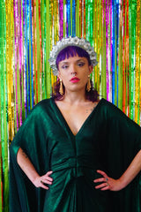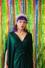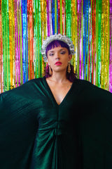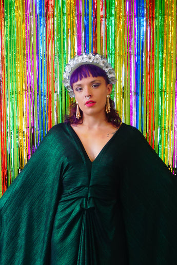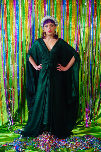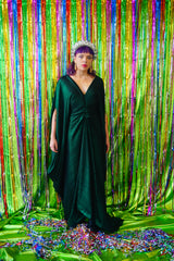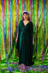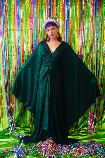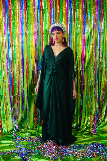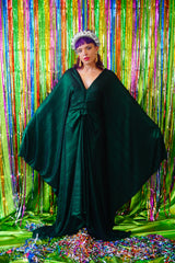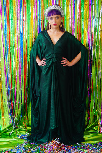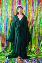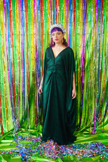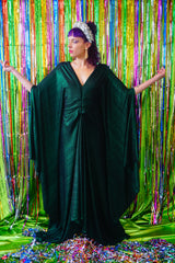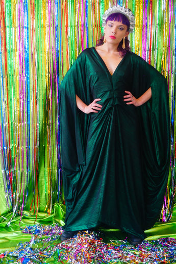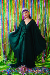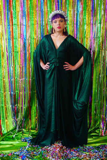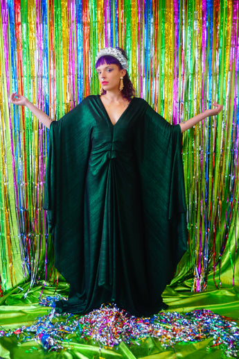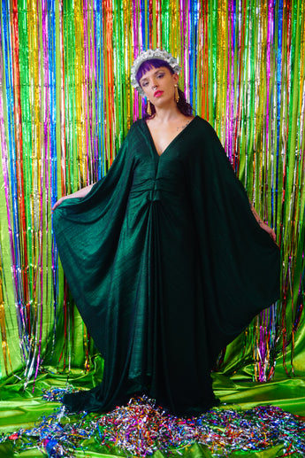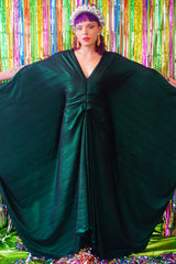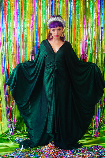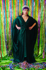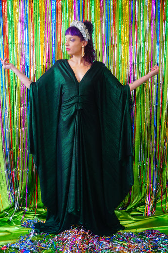 Metallic Green Pleated Studio 54 Maxi Kaftan Dress