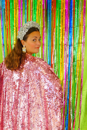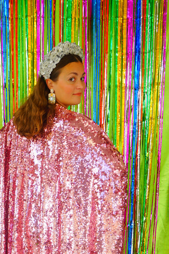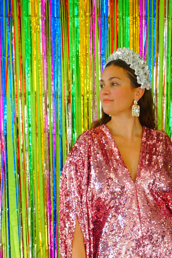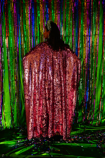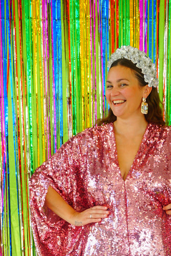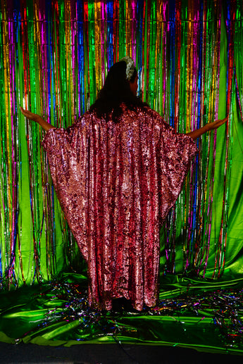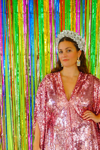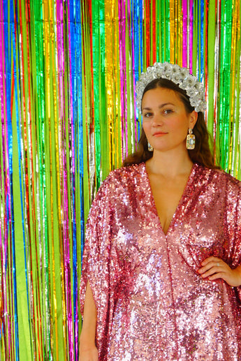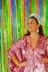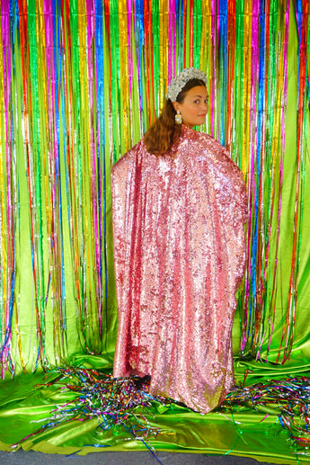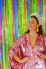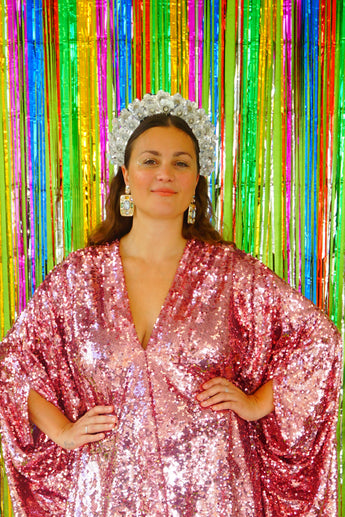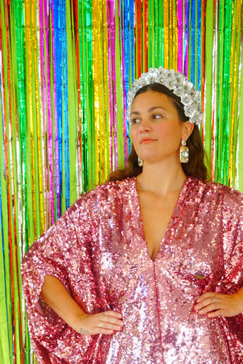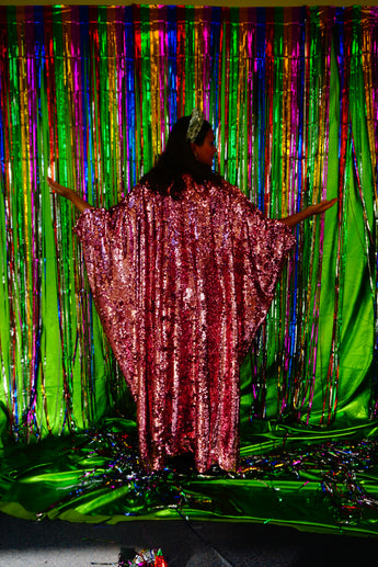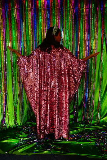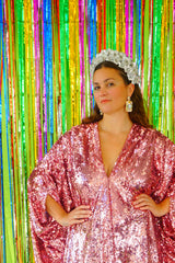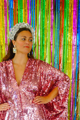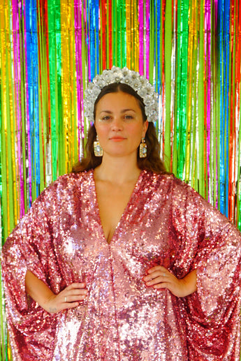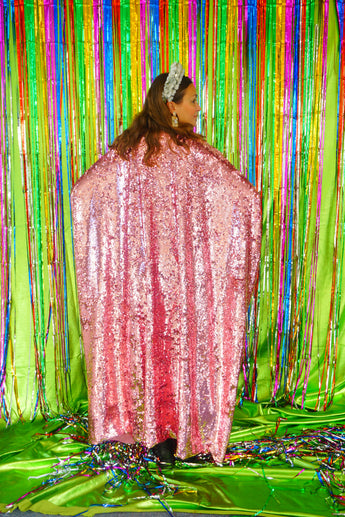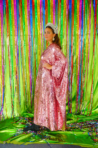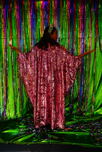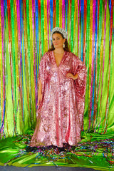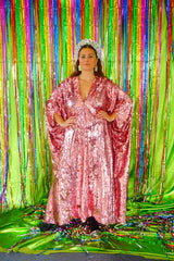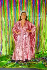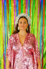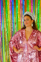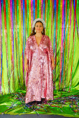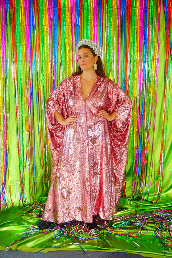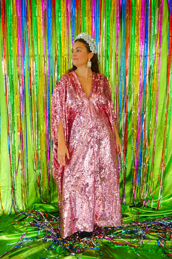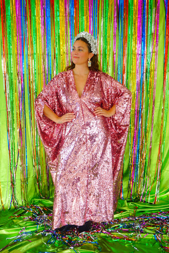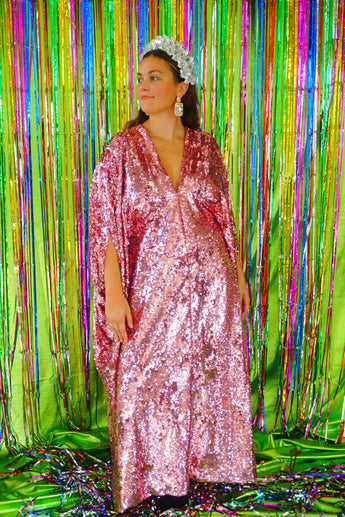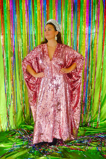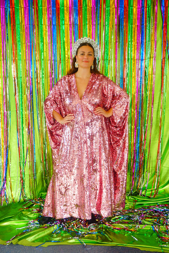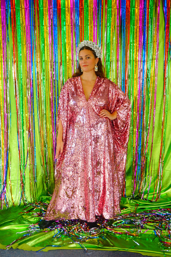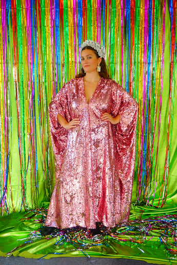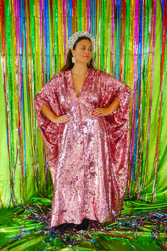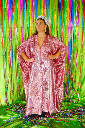 Beautiful Pink Sequins Super sparkly and made in our V-neck kaftan style.