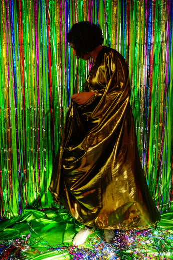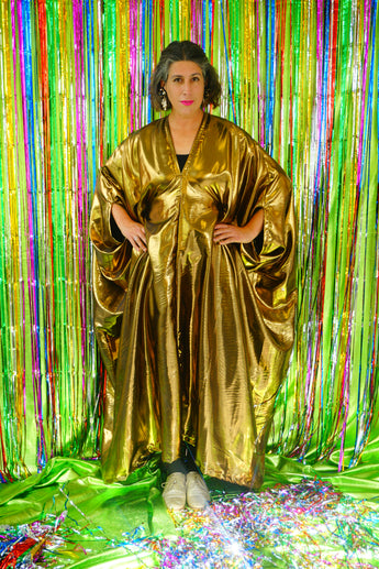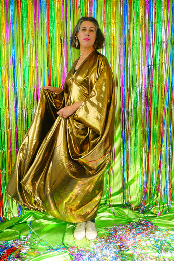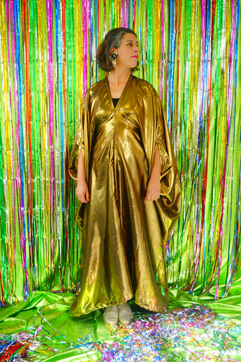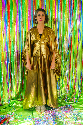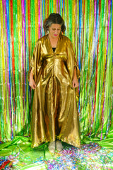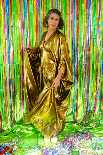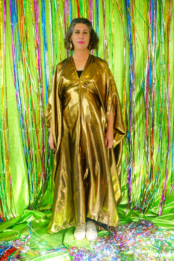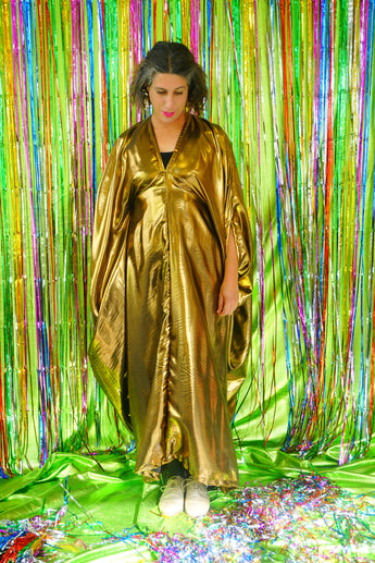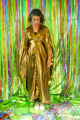 Slinky Satin Metallic Chrome Kaftan - Gold/Black