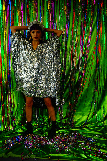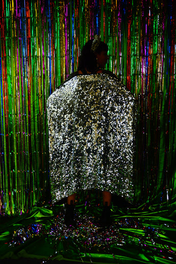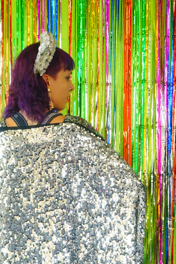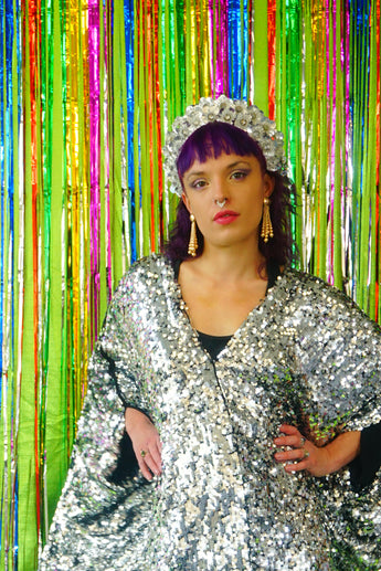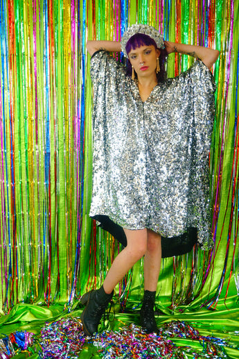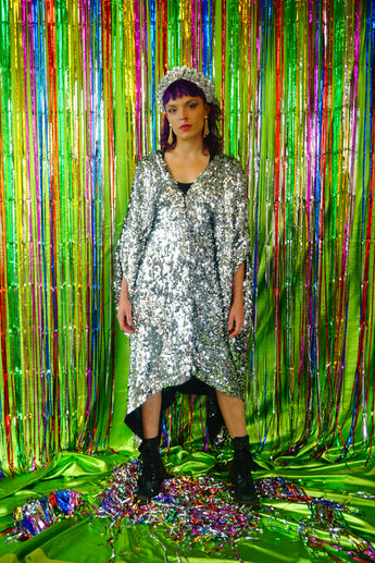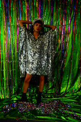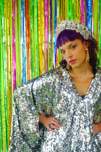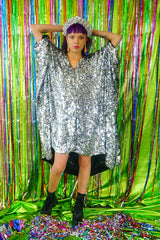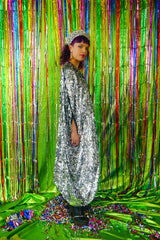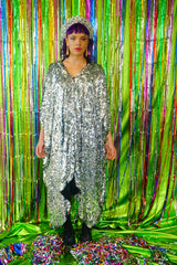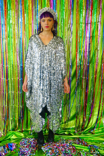 Silver mirror disc sequins - Super sparkly and made in our V-neck kaftan style.