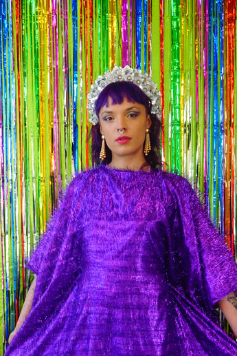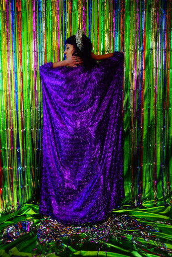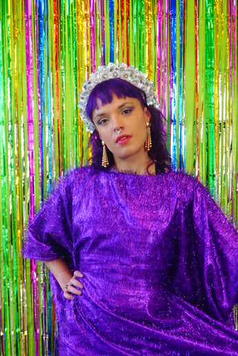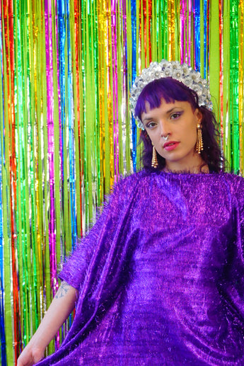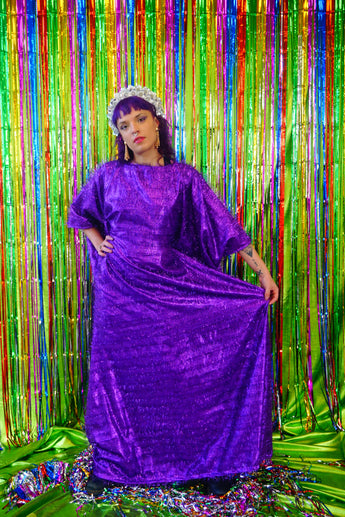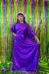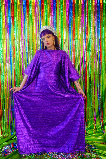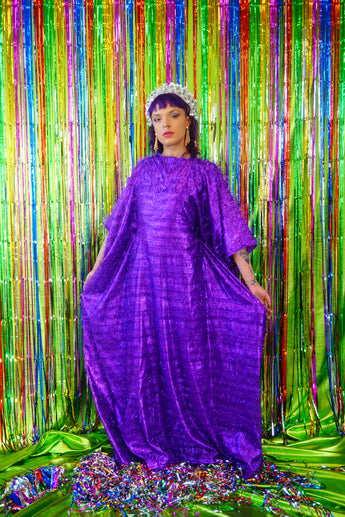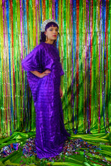 Sparkles Tinsel Hair Maxi Kaftan Party Dress Purple