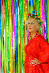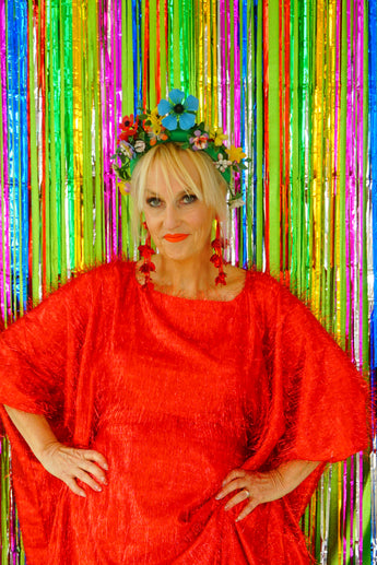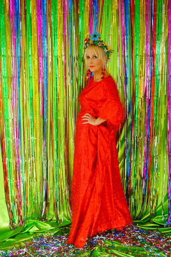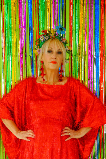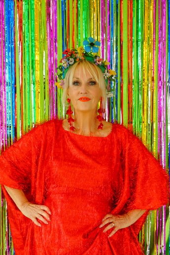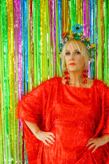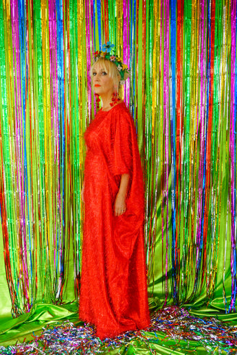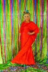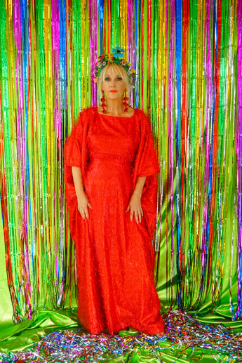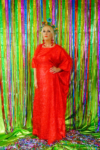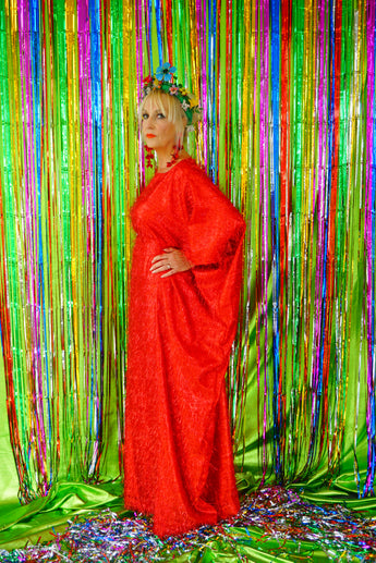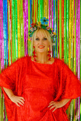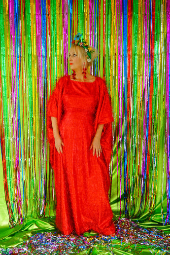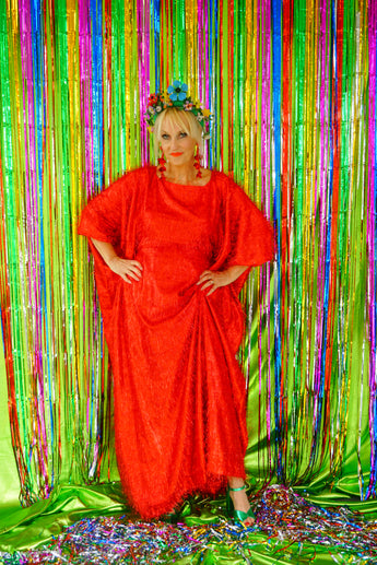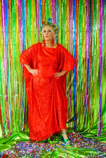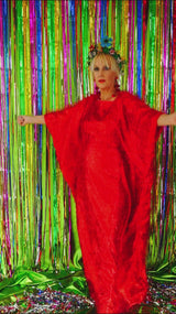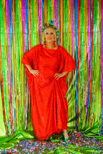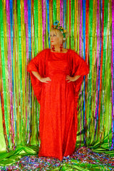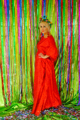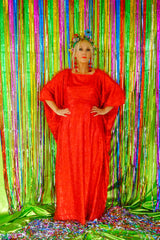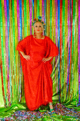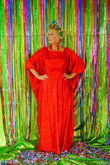 Sparkles Tinsel Hair Maxi Kaftan Party Dress Red