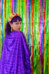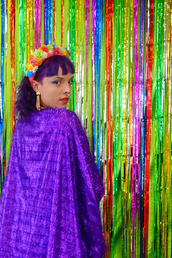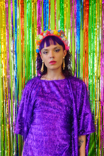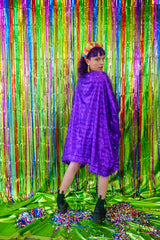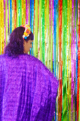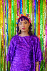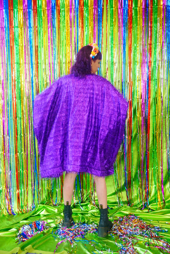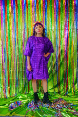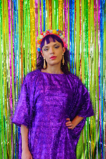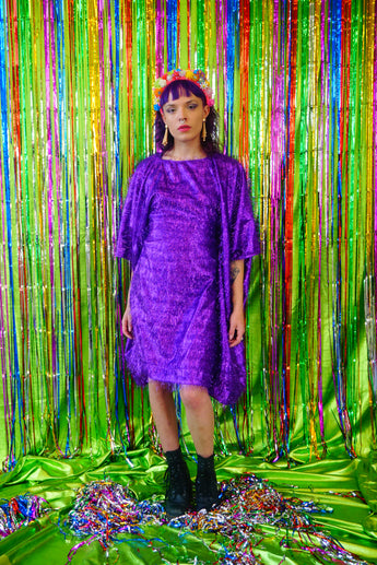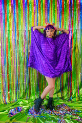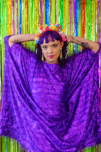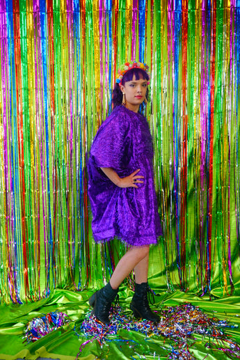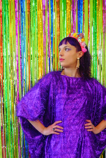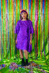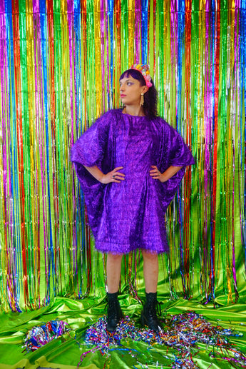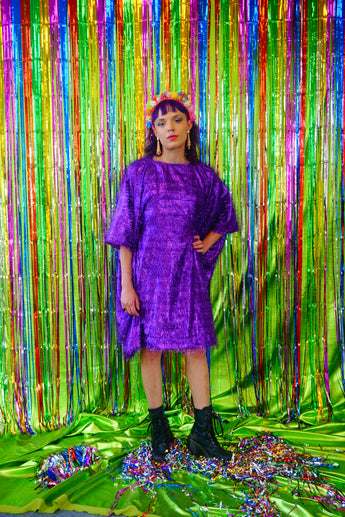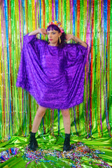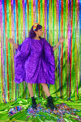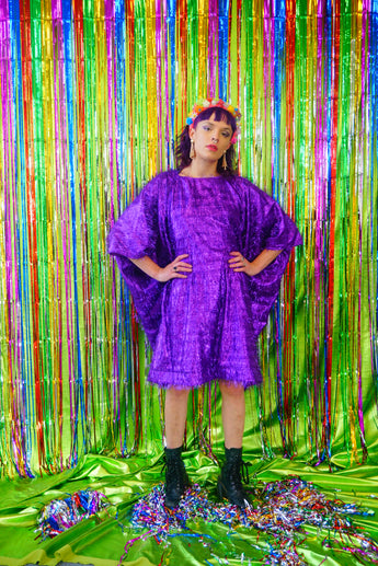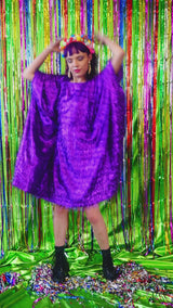 Sparkles Tinsel Hair Mini Kaftan Party Dress Purple