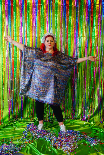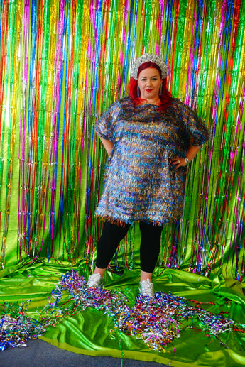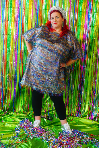 Sparkles Tinsel Hair Mini Kaftan Party Iridescent Rainbow
