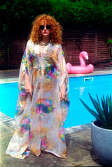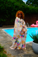 Gold and Cream Chiffon Kaftan Gown / Kimono Robe