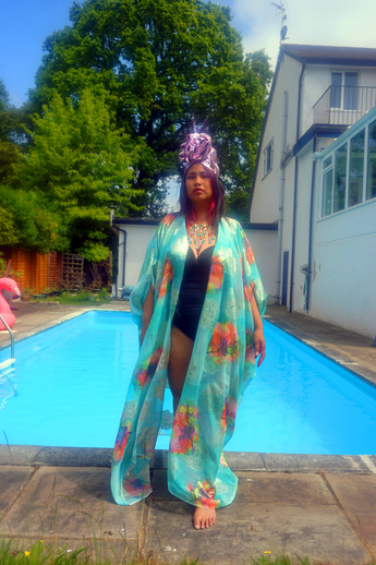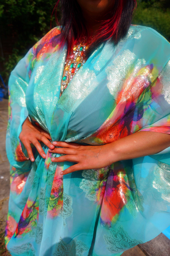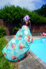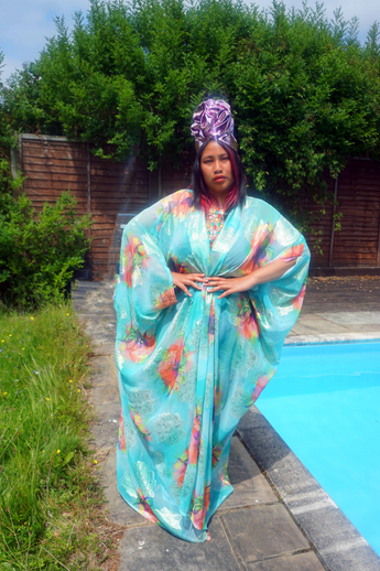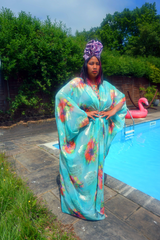 Kaftan Gown / Dress - Free size UK 6-30 (with full measurements below) Our kaftan dresses are uniquely fitted with hidden velvet ribbons on the inside meaning you can wear them two ways - 1) Free, loose and baggy, and 2) with the ribbons tied at the waist to pull the dress in and frame your figure.