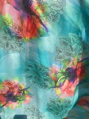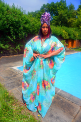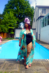Gold and Mint chiffon Kaftan Gown / Kimono Robe