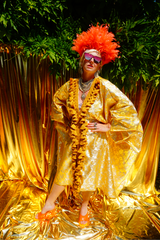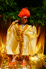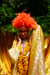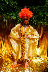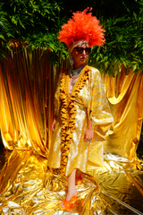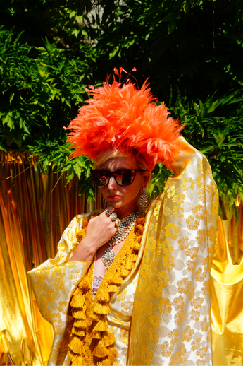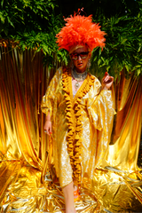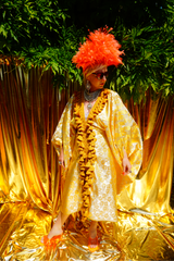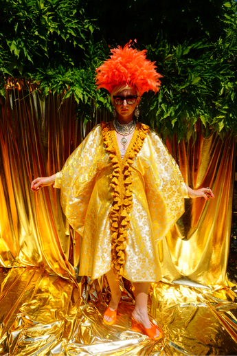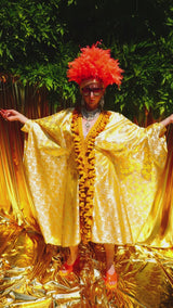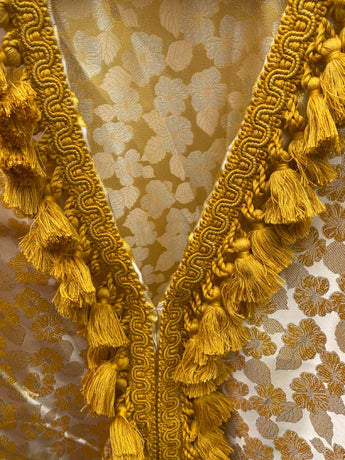 Gold Yellow Brocade silk tassel trim Kaftan Gown / Kimono Robe