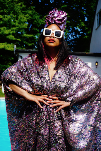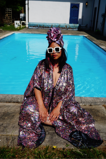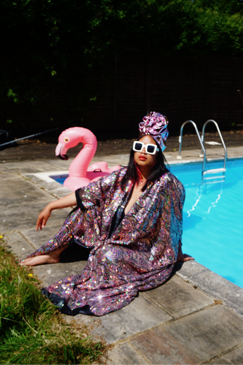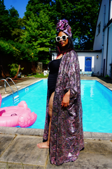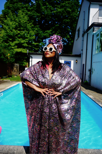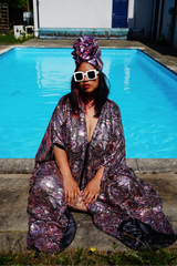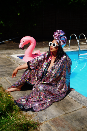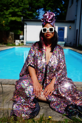 Luxury Blush Sparkle Holographic Sequin Kaftan Gown / Kimono Robe