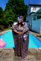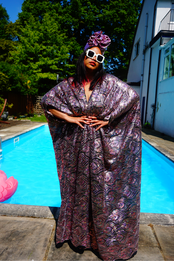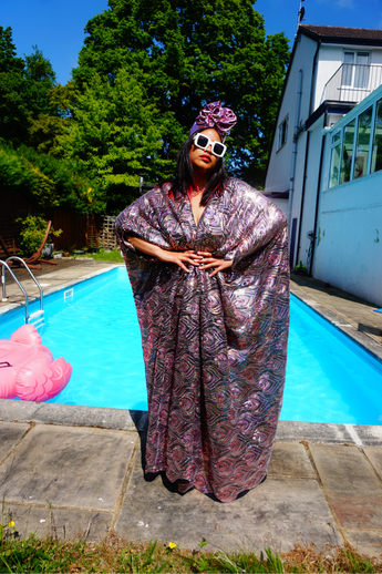 Kaftan Gown / Dress - Free size UK 6-30 (with full measurements below) Our kaftan dresses are uniquely fitted with hidden velvet ribbons on the inside meaning you can wear them two ways - 1) Free, loose and baggy, and 2) with the ribbons tied at the waist to pull the dress in and frame your figure.