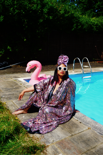 Kimono Robe With fastenings - This extra option allows you to get a kimono robe and kaftan in one! Our design consists of a central hook and eye fastening and our hidden velvet ribbons, allowing you the option to fasten and pull in at the waist if desired