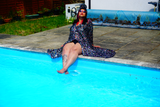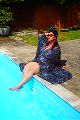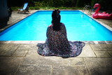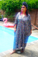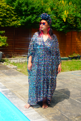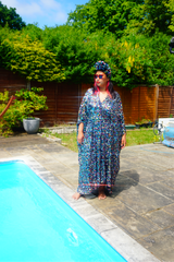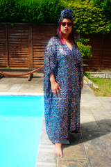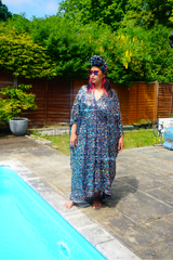 Our kaftan dresses are uniquely fitted with hidden velvet ribbons on the inside meaning you can wear them two ways - 1) Free, loose and baggy, and 2) with the ribbons tied at the waist to pull the dress in and frame your figure.