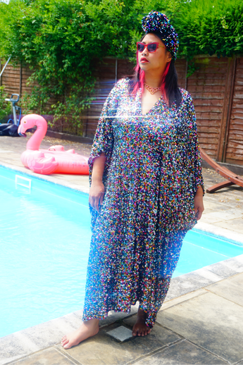 Multicoloured Sparkle Sequin Kaftan Gown / Kimono Robe