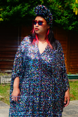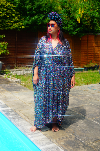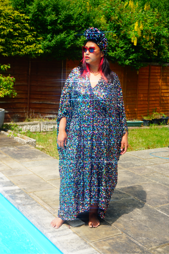 Multicoloured Sparkle Sequin Kaftan Gown / Kimono Robe.
