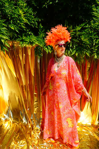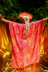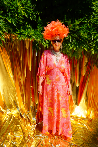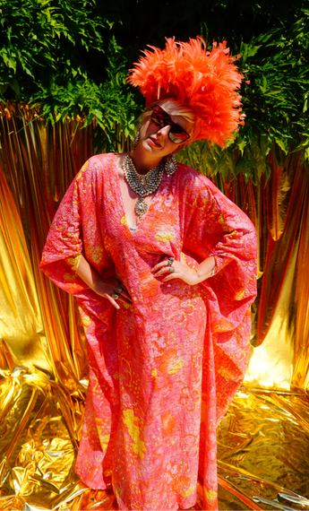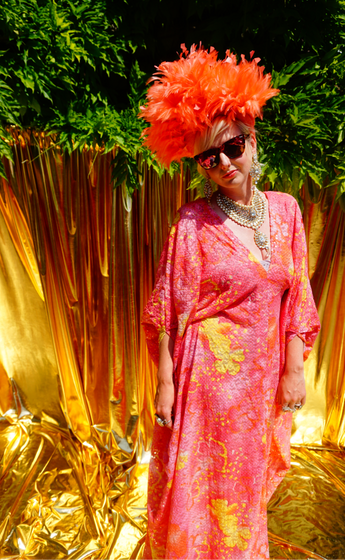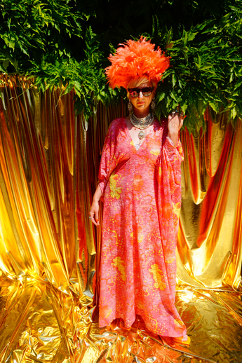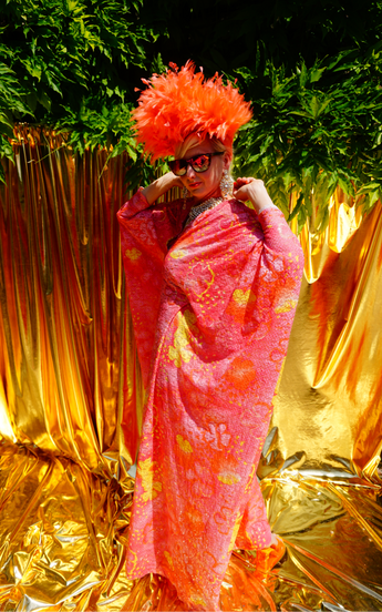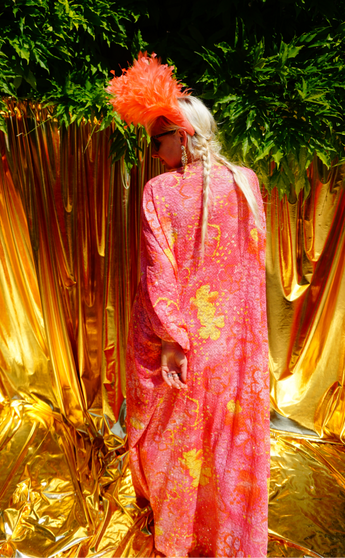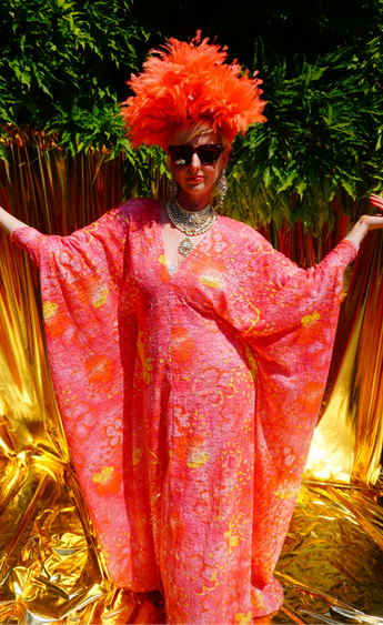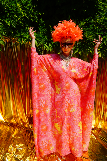 Red/Pink/Yellow Sequin Lace Kaftan Gown / Kimono Robe