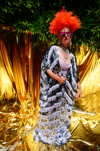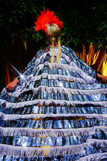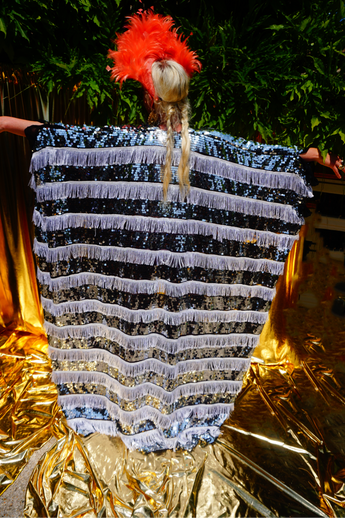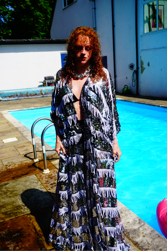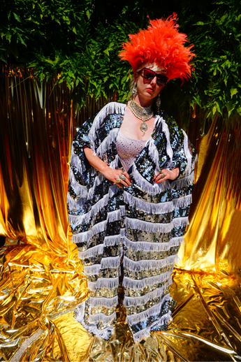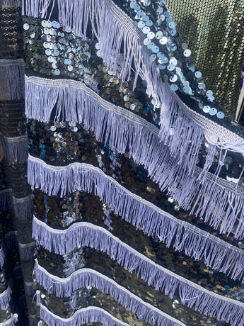 Silver, White and Black Fringe Tasseled Sequin Kaftan Gown / Kimono Robe