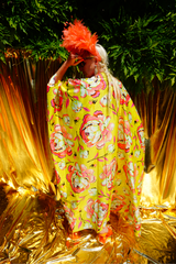 Kaftan Gown / Dress - Free size UK 6-30 (with full measurements below) Our kaftan dresses are uniquely fitted with hidden velvet ribbons on the inside meaning you can wear them two ways - 1) Free, loose and baggy, and 2) with the ribbons tied at the waist to pull the dress in and frame your figure.