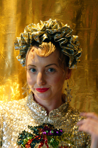 3) A Metallic Brocade ruffle headband in Gold and Silver - photos 7-9