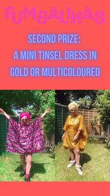 2) A choice of one of our tinsel hair mini-kaftan dresses in either gold or multi coloured - View Here