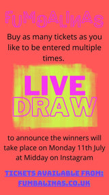 Buy a ticket here for £3 to be entered into a prize draw which will take place LIVE on instagram on Monday 11th July at midday. Names will be drawn out of a hat and the winners announced and notified via email.
