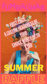 1) A chance to have your very own custom made headdress worth up to £150... See YOUR VISION come to life... The 1st prize ticket winner can send their request/brief/ideas and any references and from there i will draft initial designs and send over for feedback and approval until you are totally satisfied with the finished piece...