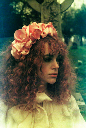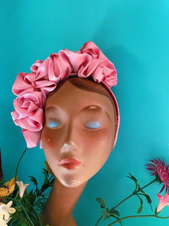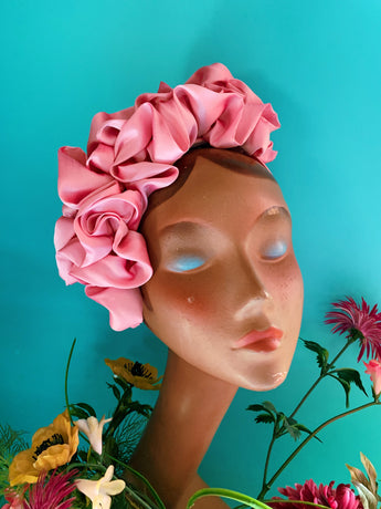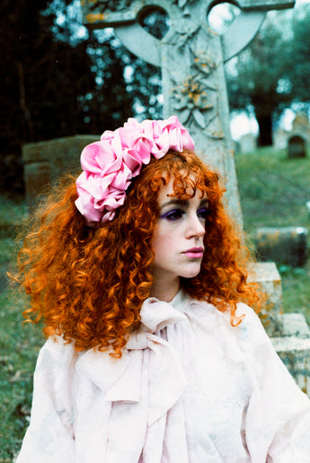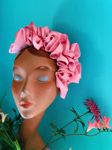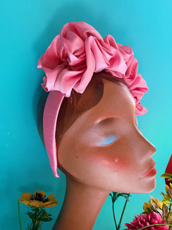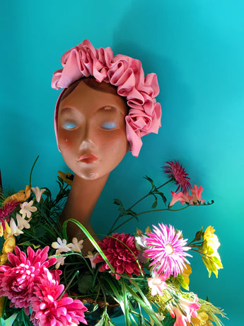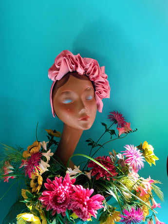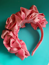 Baby Pink Silk Ruffle headband - Shine-Sheen finish - ASYMETRICAL style