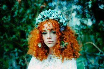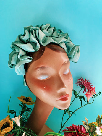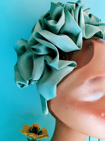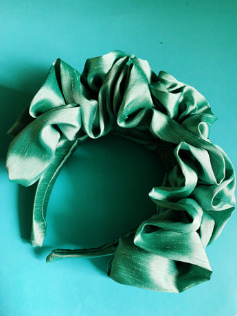 Green Silk Ruffle headband - Shine-Sheen finish - FULL style