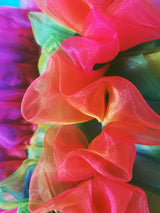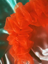 Our liquid satin kaftan dresses are lightweight, comfortable and ooze fun and sophistication at the same time. Wear with the hidden ribbons tied for a figure hugging look, or wear loose and oversized for a free and easy style. Choose your own colour of ruffles for the neck and arms from the colour list below.