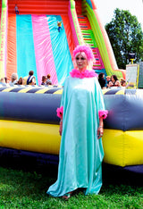Mint blue/green Liquid Satin Ruffle kaftan Dress