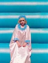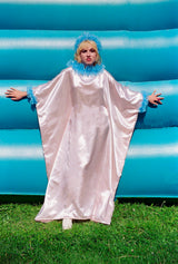 Pale Pink Liquid Satin Ruffle kaftan Dress