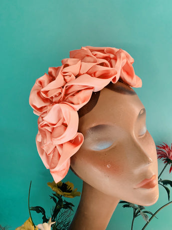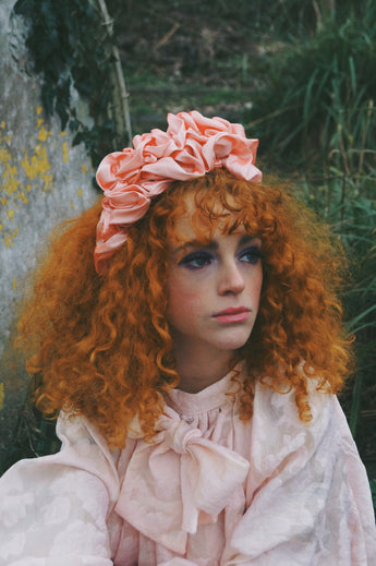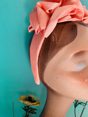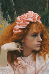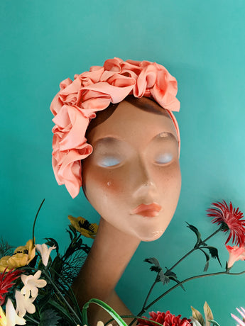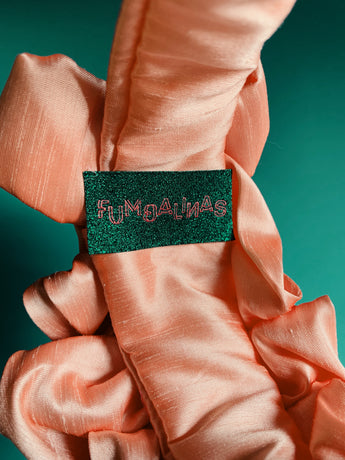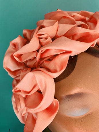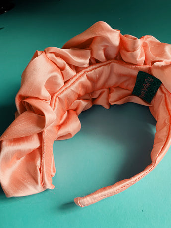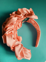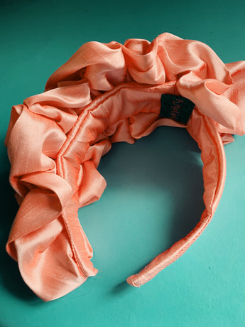 Peach Silk Ruffle headband - Shine-Sheen finish - ASYMMETRICAL style