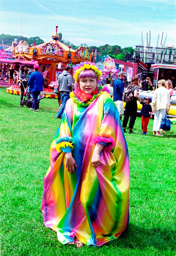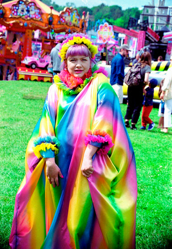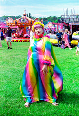 Zap Lolly Rainbow Liquid Satin Ruffle kaftan Dress