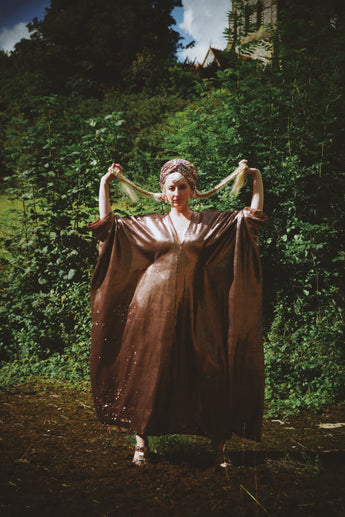 Our kaftan dresses are uniquely fitted with hidden velvet ribbons on the inside meaning YOU decide how you'd like to wear them. Choose from -