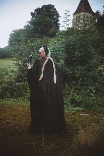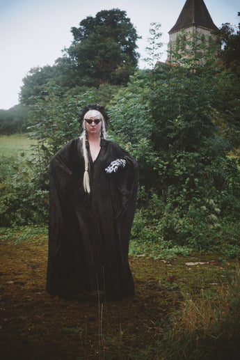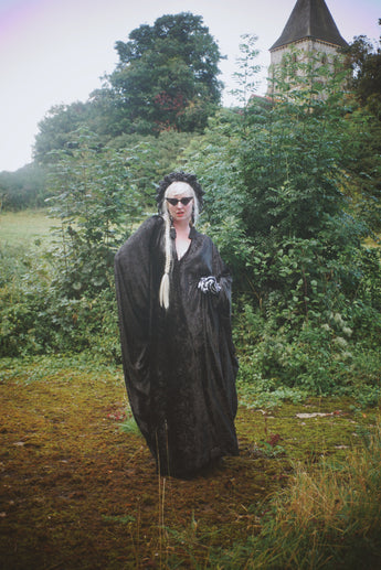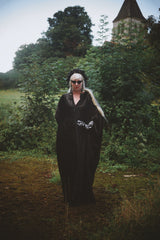 Effortless Velvet Obsidion Black Kaftan Gown. A lightweight Crushed Velvet in our standard V-neck style.