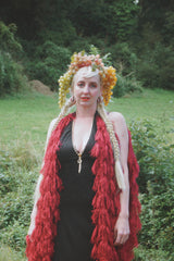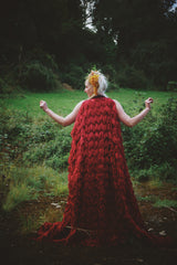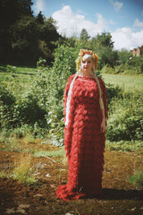 Fuzzy Eyelash Crimson Red and Gold Sequins Kaftan Gown, Freesize