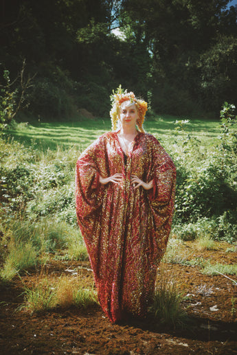 Our kaftan dresses are uniquely fitted with hidden velvet ribbons on the inside meaning YOU decide how you'd like to wear them. Choose from -
