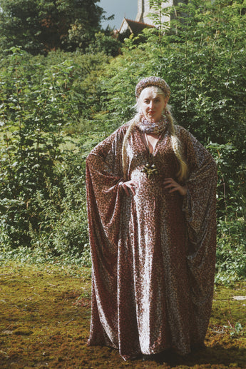 Opulent Velvet Dusky Pink hearts Leopard Print Velvet kaftan Gown